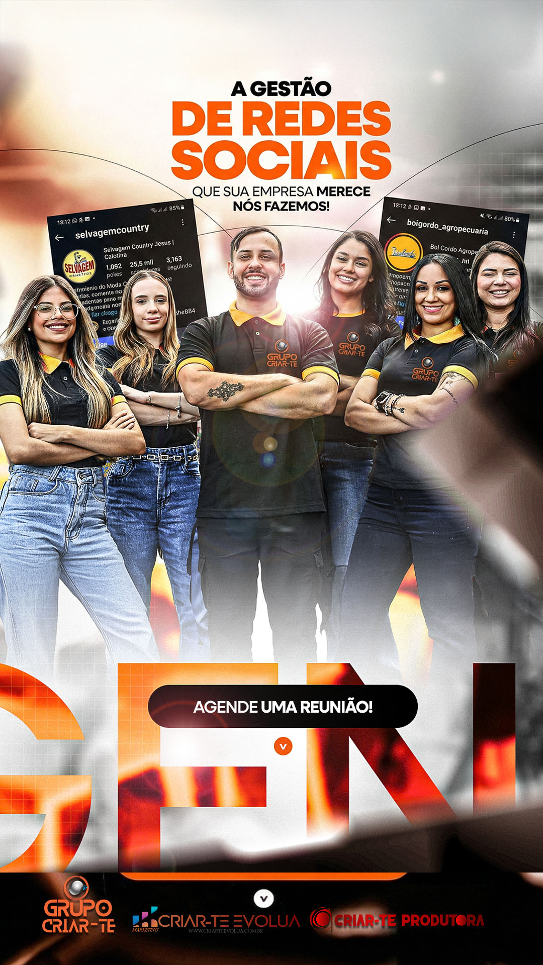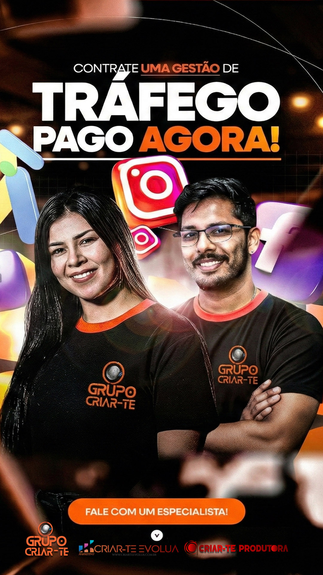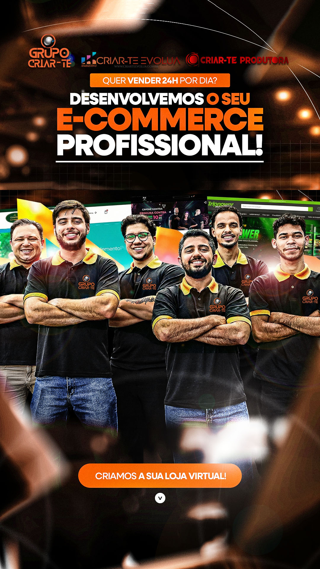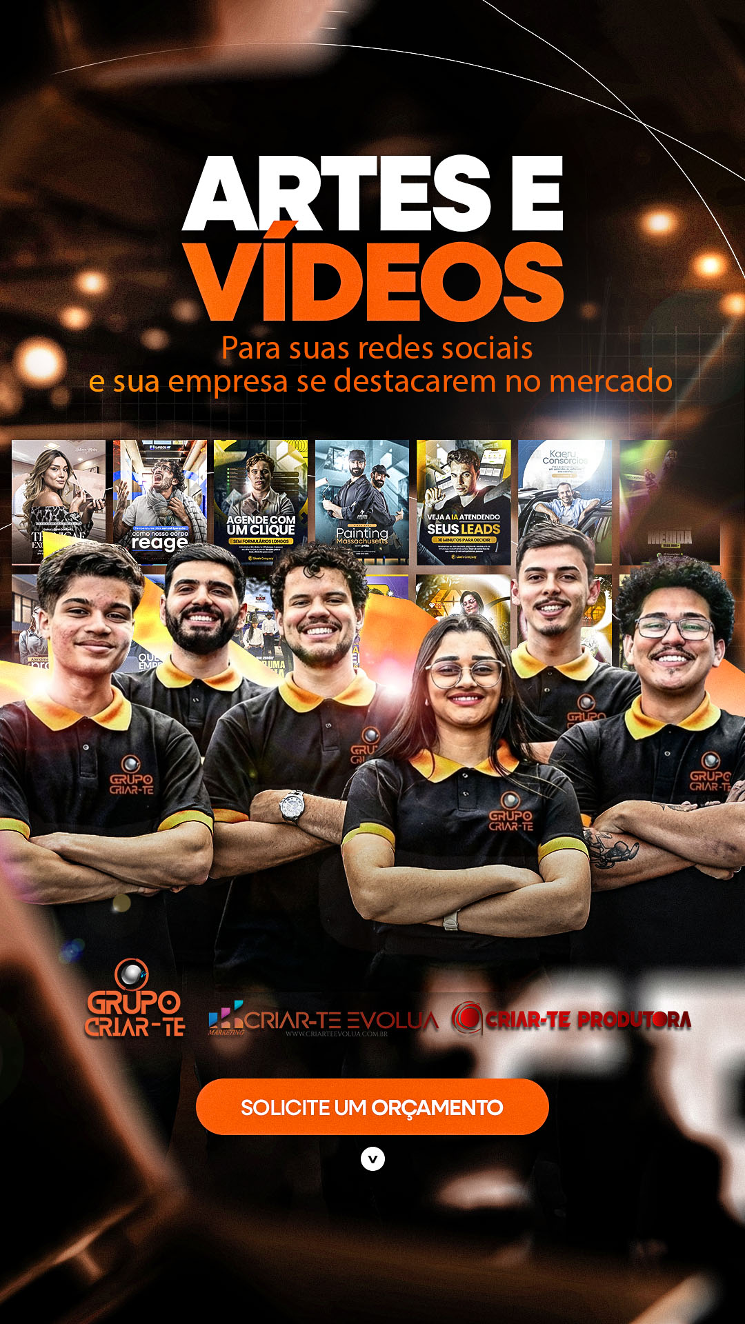 Somos uma equipe multidisciplinar, com mais de 30 colaboradores diretos e inúmeros indiretos, organizada por núcleos de especialidade que se integram conforme cada projeto. Unimos a força da Criar-te Produtora (audiovisual, eventos e transmissões) com a estratégia da Criar-te Evolua (marketing, tráfego pago, branding, SEO e sites), garantindo entregas completas do planejamento à execução — com direção criativa, gestão de projetos, captação de imagem e som, edição e finalização, design e automações com IA — sempre com padrão profissional e foco em resultado.
